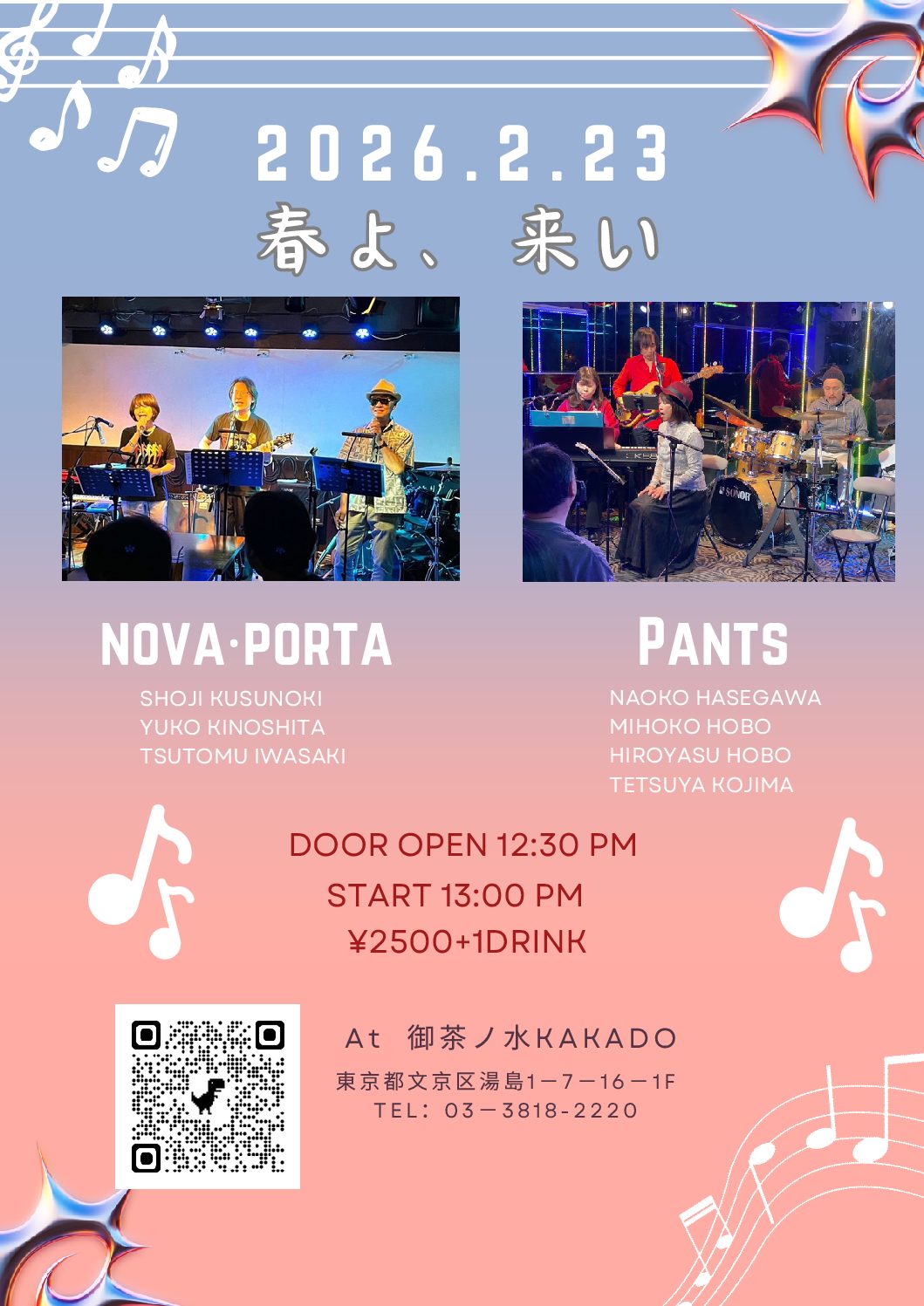 Open18:30/Start 19:00 Ticket ADV./Door¥2,000+1D 【出演】そらの…