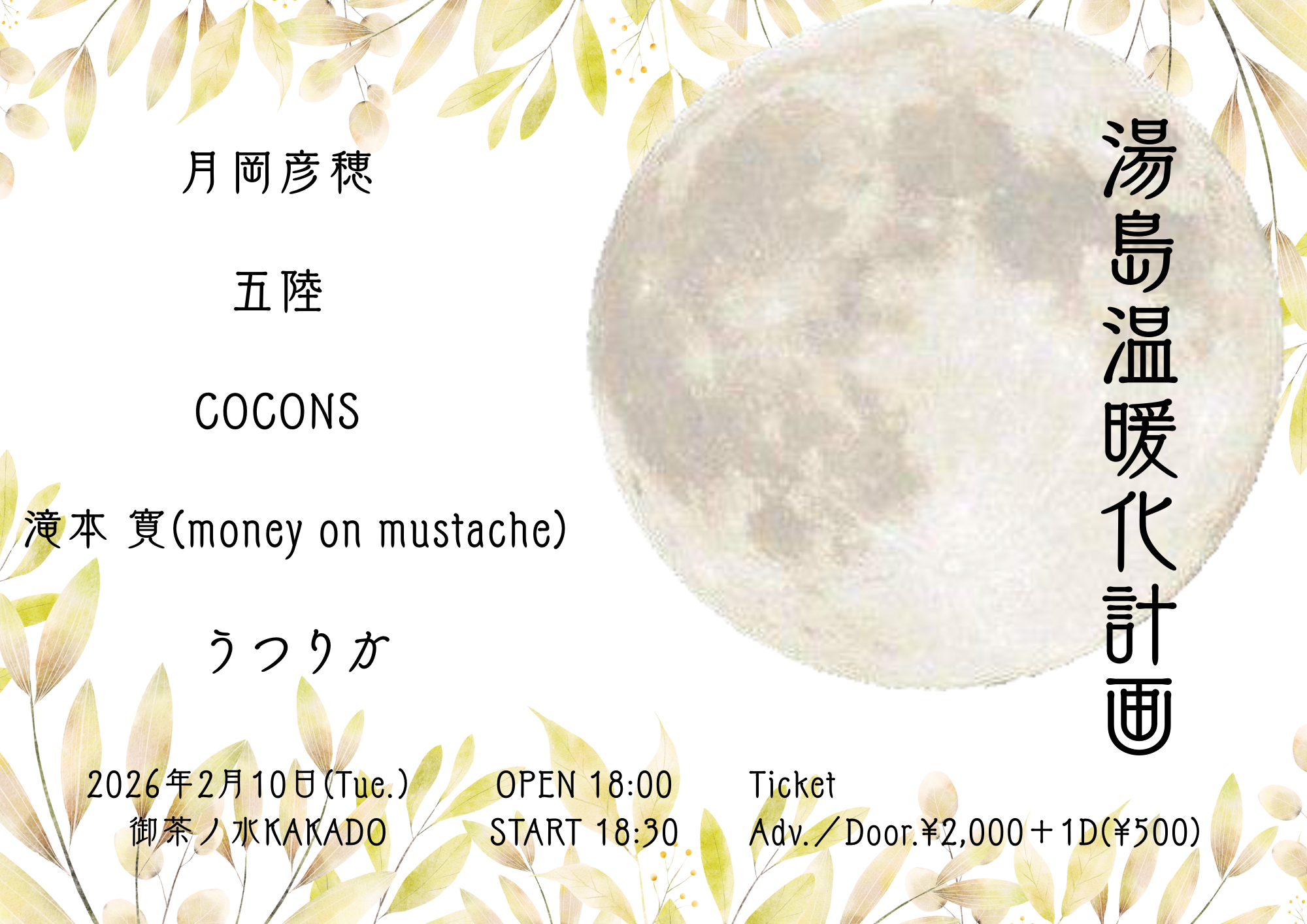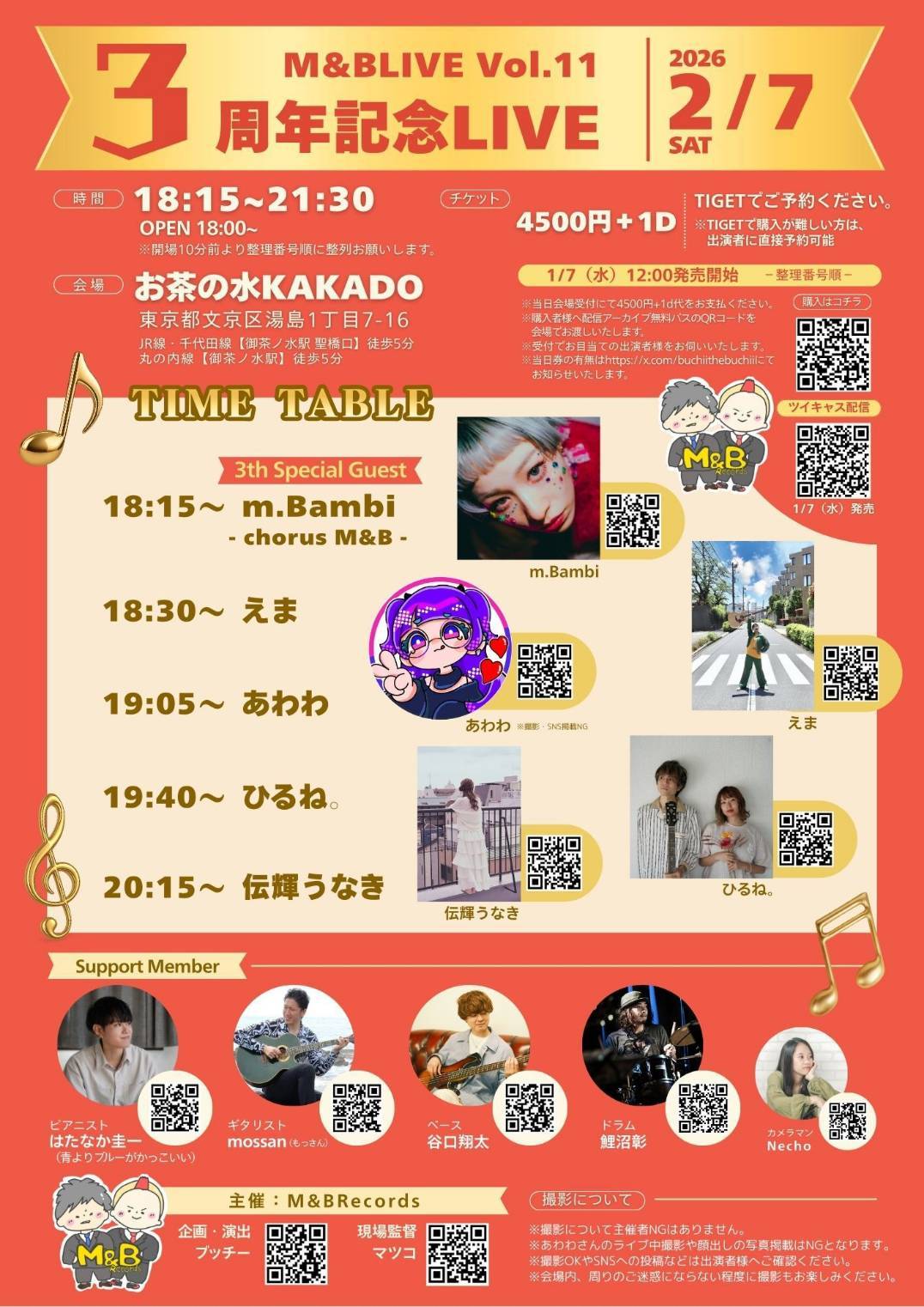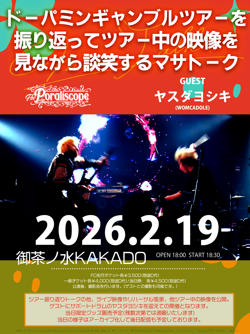 OPEN 18:00/START 18:30 VIPチケット¥6,000/Sチケット ¥5,000/通常チケッ…