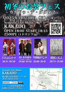 OPEN 18:00/START 18:20 Ticket Door¥2,500+1D/学生¥2,000+1D 【出演】TheLeafTones/秋の夜長の仲間たち