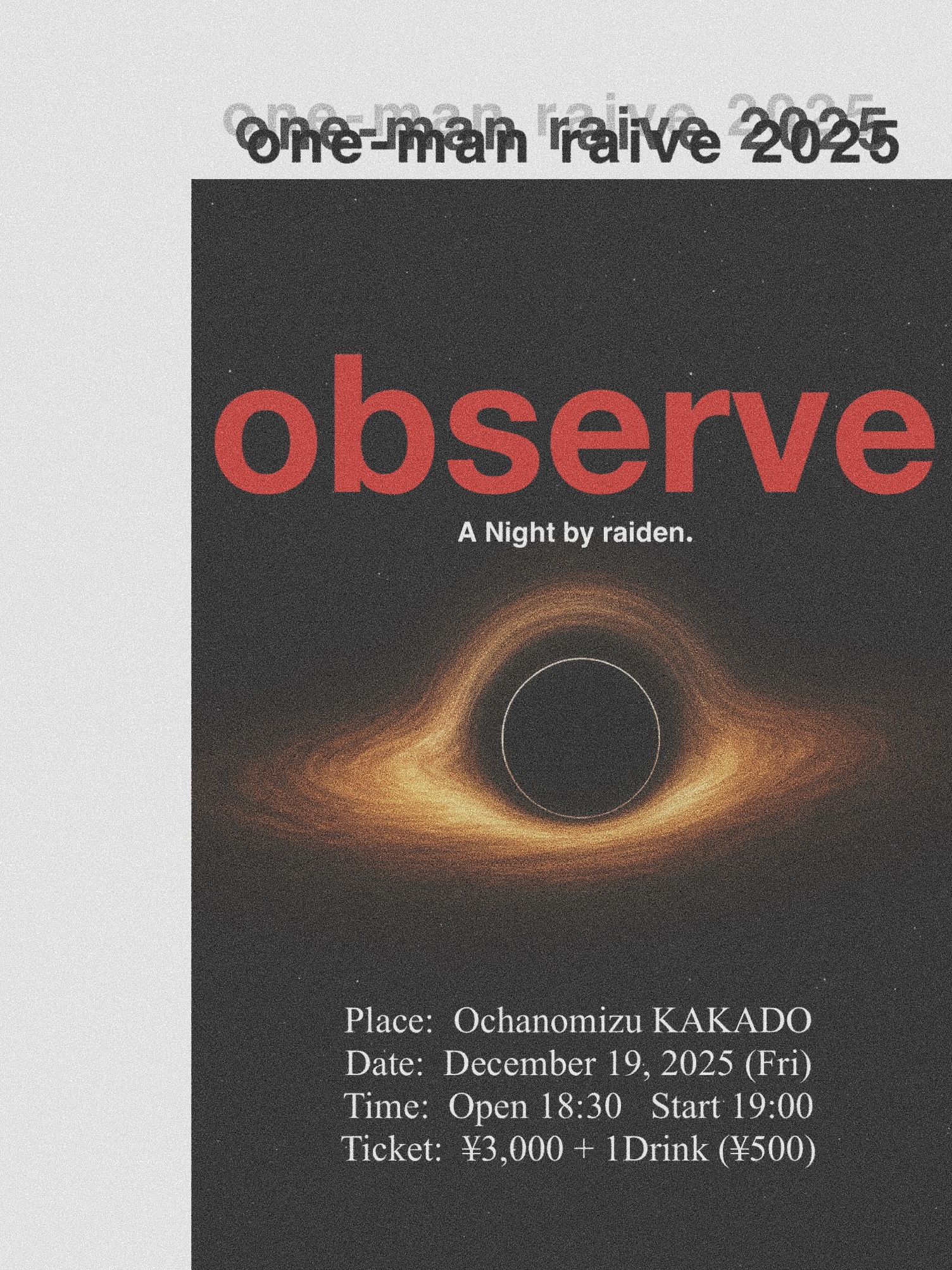 昼公演OPEN 12:30/START 13:00 夜公演OPEN 18:00/START 18:30 Ticket ADV.¥4,500+1D(昼夜¥8,000+1D)/Door.¥5,000+1D…