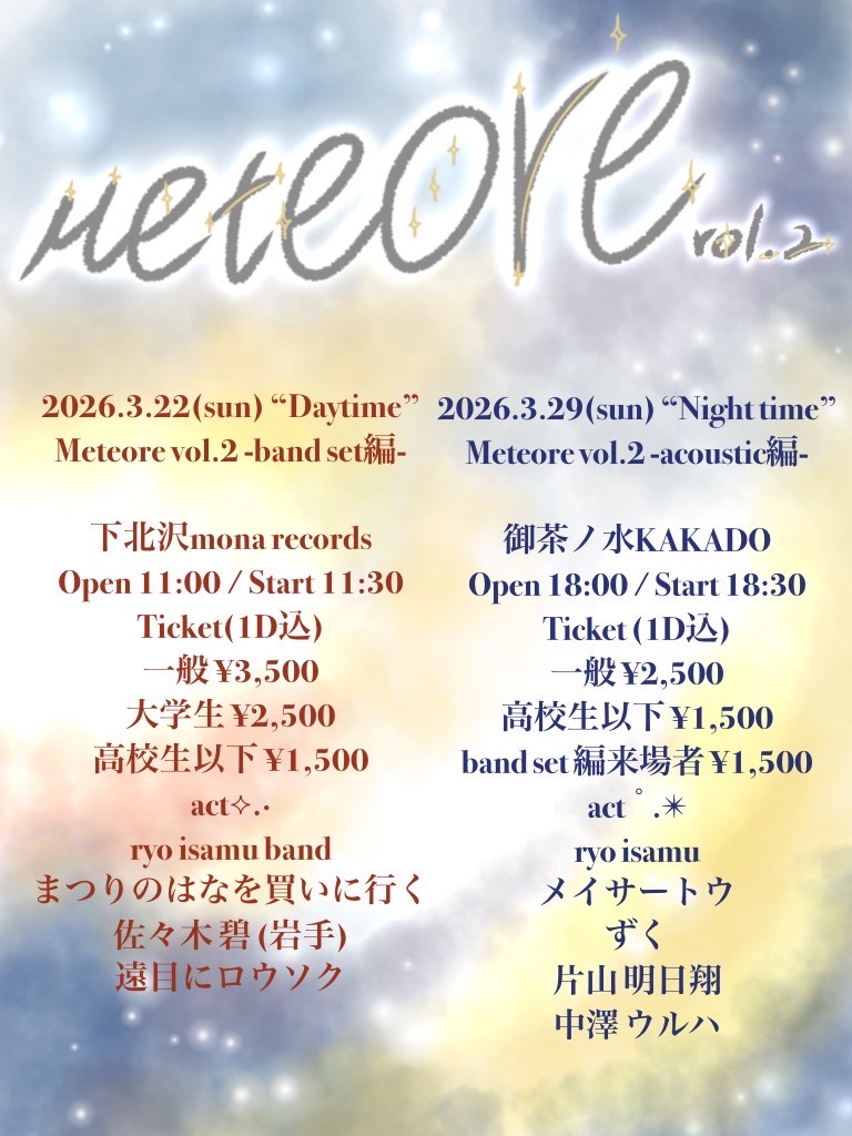 OPEN 17:30/START 18:00 Ticket ADV.¥4,500+1D/Door¥4,800+1D 【出演】Aryu/シノザワリョウタ/Tee./Mefy./Luca/ゆあ/ゆうそで