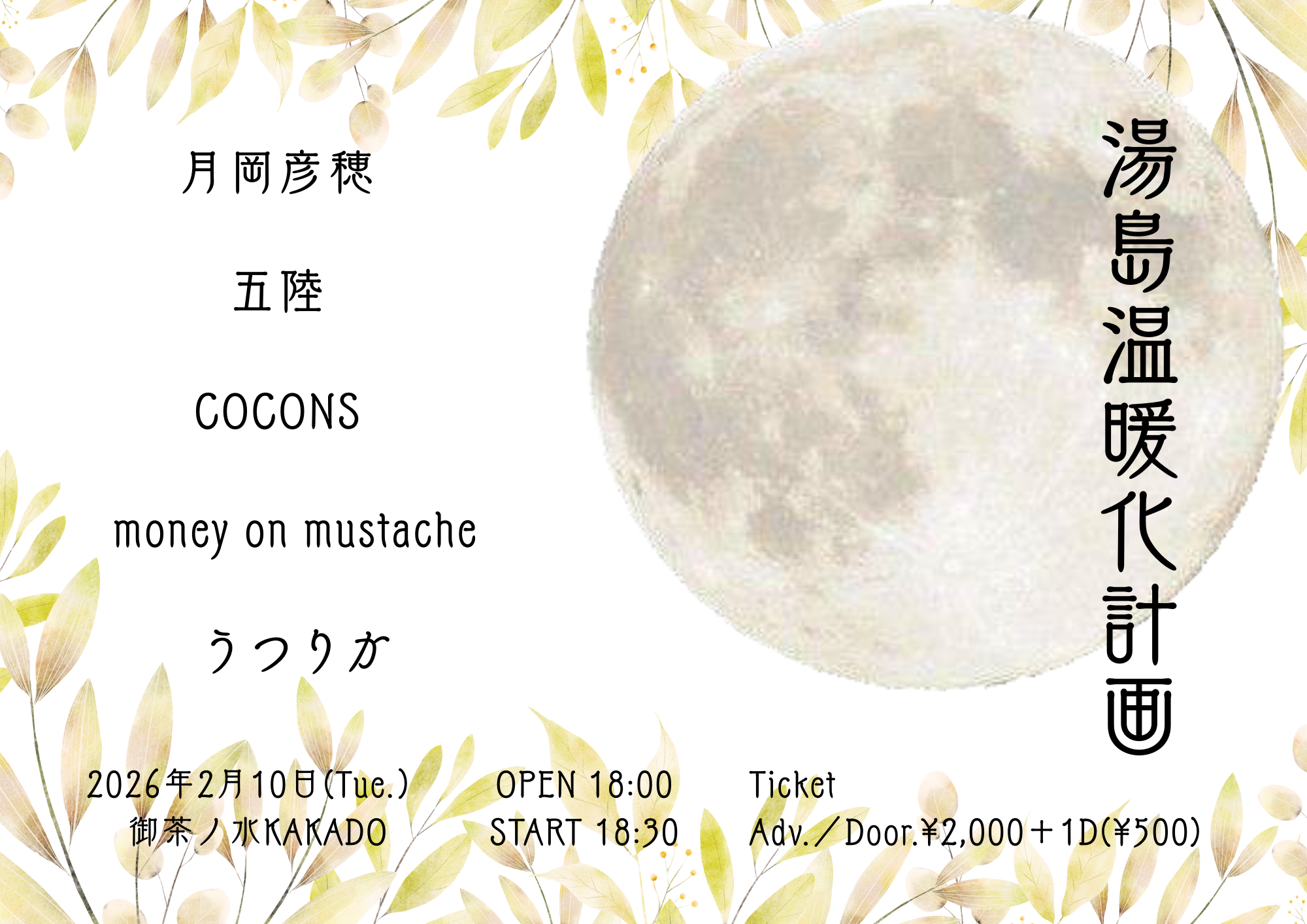 OPEN 18:00/START 18:30 Ticket ¥4,000+1D 【出演】HATAMO/KuruMilk/むゆつきみ/田口紀仁/KOA/フナイム/Atushi/GSR